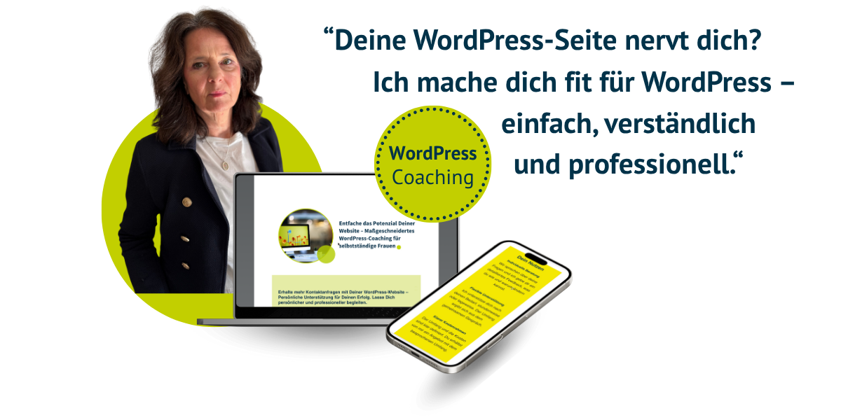 seit über 25 Jahren gestalte ich Websites, seit 5 Jahren coache ich Selbstständige & Unternehmen rund um WordPress. Mein Fokus: verständlich erklären, individuell begleiten, SEO mitdenken – und dich befähigen, deine Seite selbst in die Hand zu nehmen.